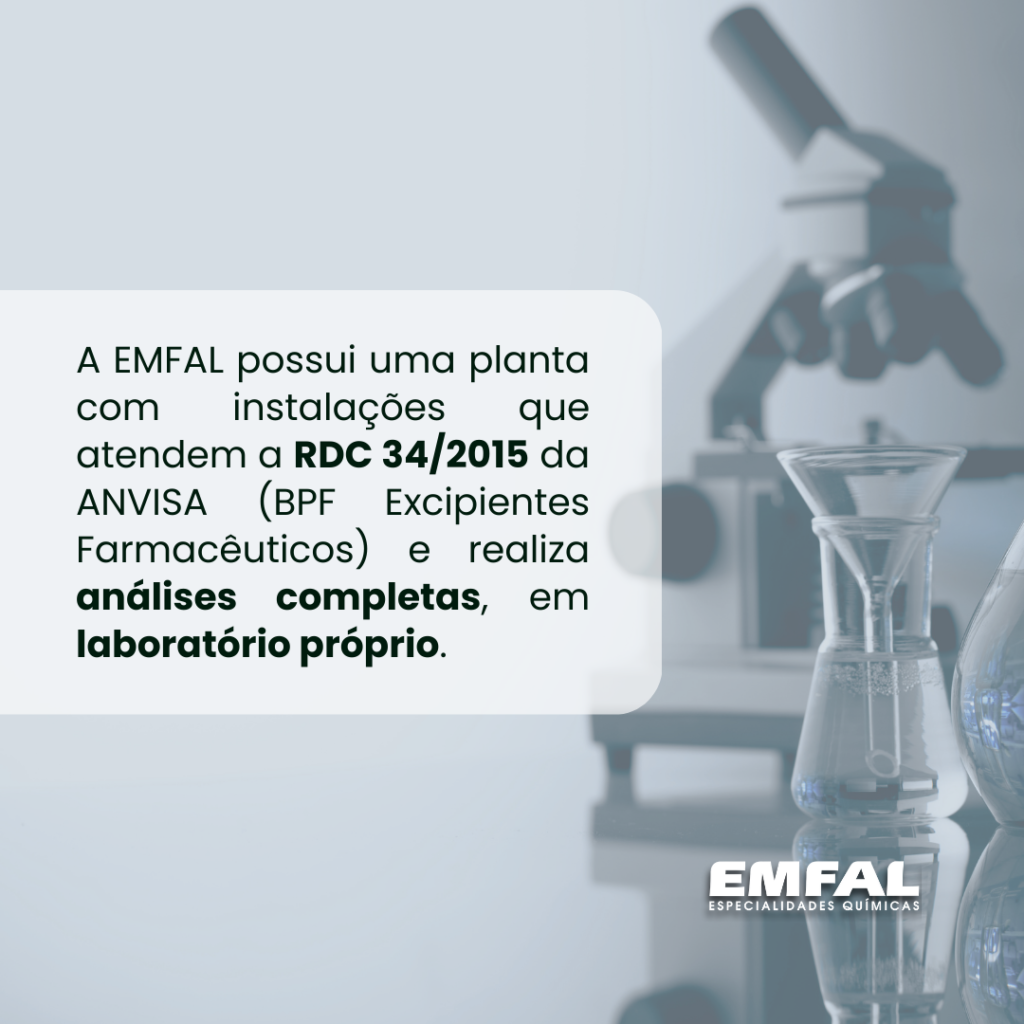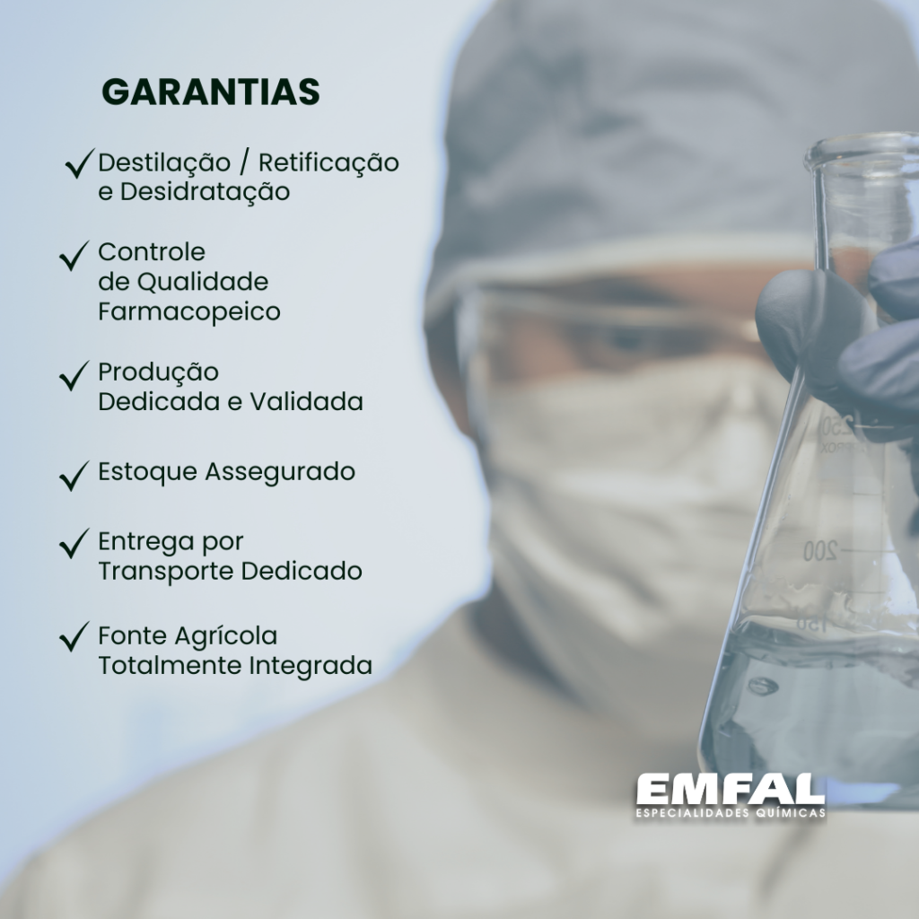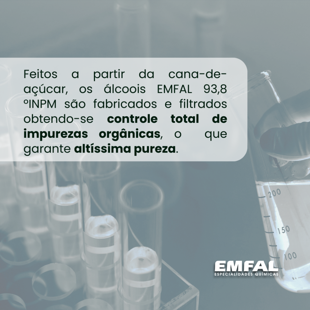 Desde 1993 a Emfal desenvolve e produz soluções em álcool, em suas derivações, especialidades químicas e farmacêuticas de altíssima qualidade e totalmente adequadas às normas vigentes.