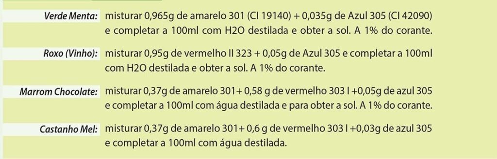 Sugestões de misturas de corantes: