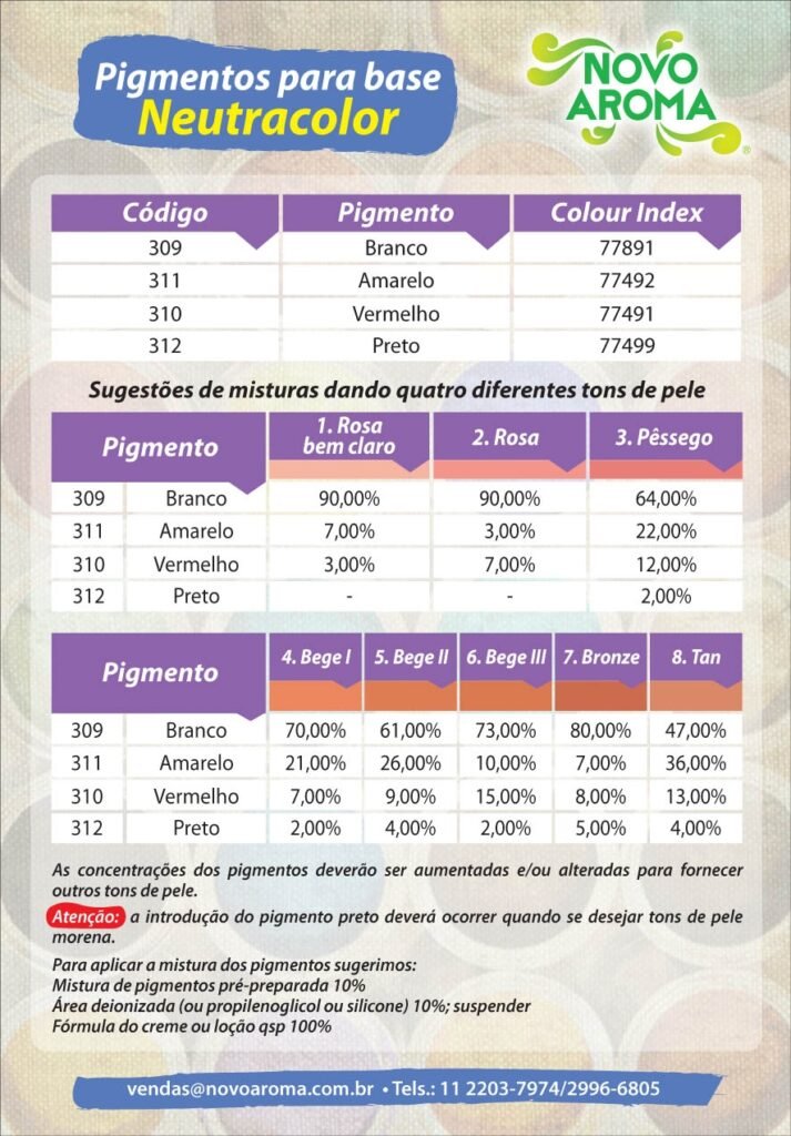 Sugestões de misturas de pigmentos: