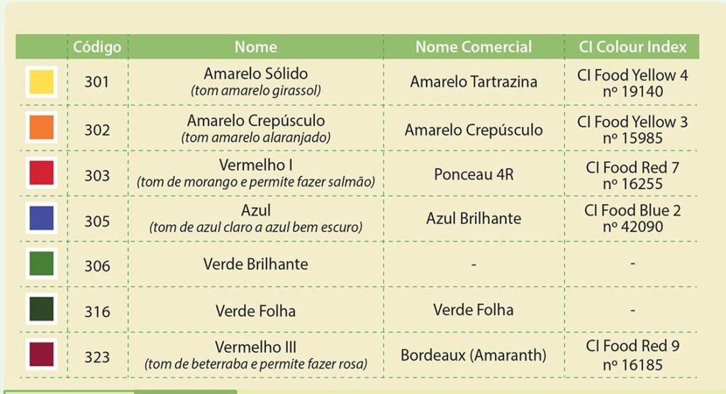 A Resolução RDC 44 de 09/08/2012 da ANVISA apresenta uma lista de substâncias corantes permitidas nas diversas aplicações cosméticas. Para corantes alimentícios deve-se relacionar relacionar na lista de ingredientes o nome completo do corante ou seu número de INS (International Numbering System). A lista dos corantes (sintéticos e naturais) permitidos para uso em alimentos está no Informe Técnico nº68, de 3 de setembro de 2015, Classificação dos corantes caramelos II, III e IV e dos demais corantes autorizados para uso em alimentos.